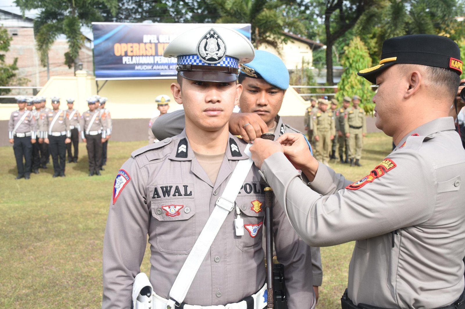 Apel gelar pasukan ditandai dengan penyematan pita tanda dimulainya Operasi Ketupat 2026 kepada empat perwakilan personel dari unsur TNI, Polri, Satpol PP, dan Dinas Perhubungan.
