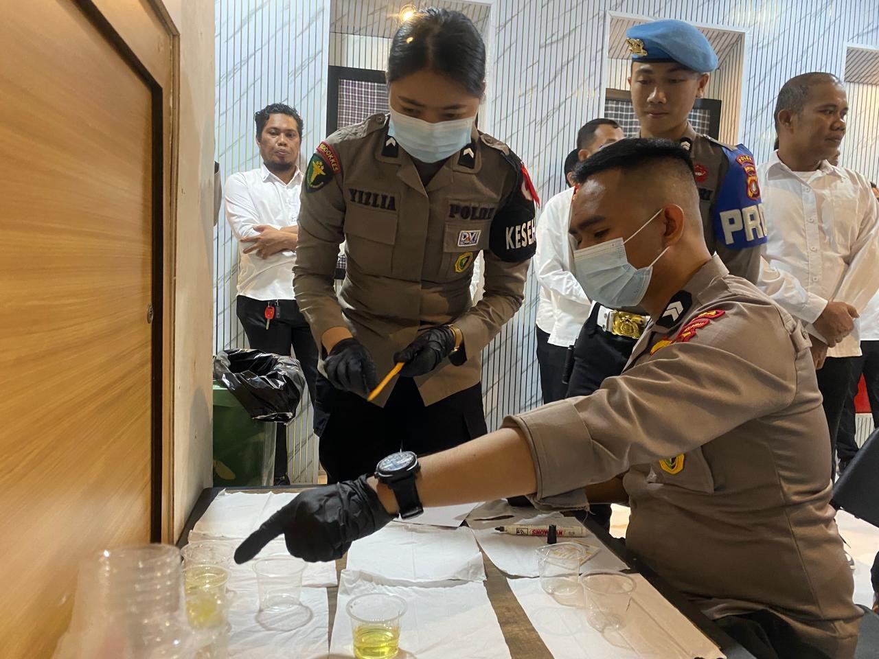 Setelah pelaksanaan apel pagi rutin, seluruh personel langsung diarahkan untuk menjalani tes sampel urine. Langkah ini bertujuan untuk memastikan tidak satupun personel yang terdeteksi menggunakan zat adiktif berbahaya.