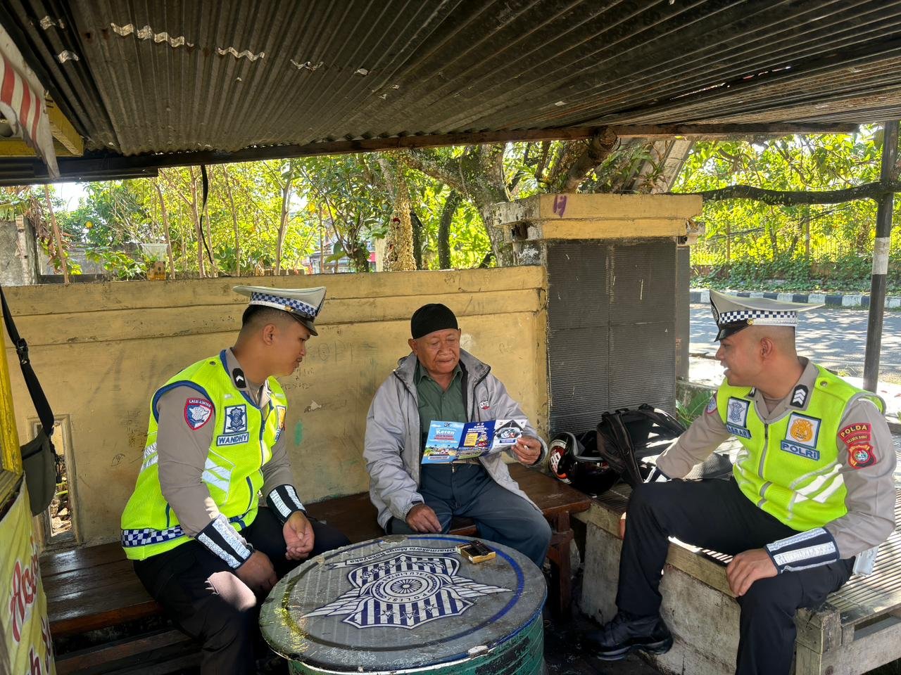 Petugas menyampaikan edukasi mengenai pentingnya selalu mengutamakan keselamatan, mematuhi rambu lalu lintas, serta wajib menggunakan perlengkapan keselamatan seperti helm SNI dan kelengkapan surat-surat kendaraan.